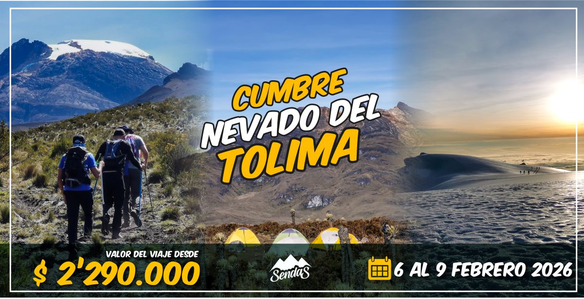 Nuestra travesía inicia en el Terminal de transporte de Ibagué, allí nos recogerán a las 2:00 am, viajaremos en transporte privado por 100 km hasta llegar al punto donde inicia el trekking a 3.100 mts, realizaremos una caminata de 16 km hasta los 3890, tomaremos el almuerzo en la laguna Bombona y llegaremos a los Termales del Cañón, donde tomaremos un muy reconfortante baño Termal, allí mismo pasaremos la noche en nuestro campamento. Aquí alistamos la maleta con únicamente lo necesario para hacer cumbre. cada uno deberá cargar el sleeping y la ropa de cumbre y su propia agua