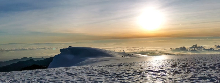 Nos levantaremos a la 1:30 am, y luego de un desayuno ligero iniciaremos nuestro trekking de intento de Cumbre pasando de 4480 mt a 5.200 mt son 5  km  ida y regreso una vez en la cumbre tomaremos un descanso de unos 30 min para disfrutar del paisaje e iniciaremos el descenso, estimamos estar de regreso en el campamento a las 10:30 am, luego del desayuno, desmontamos el campamento e iniciaremos trekking de 8 km hasta la finca la playa a los 3.800 mts donde pasaremos la noche.