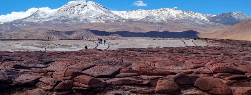 Desde San Pedro salimos hacia el sur, recorriendo la cuenca del Salar de Atacama, para visitar Tambillo, pueblo colonial con antiguos huertos frutales. Desde aquí se dirige al Gran Salar de Atacama, el tercero más grande del planeta, y el primer lugar de producción de Litio del mundo, visitando la Laguna Chaxa, parte de la Reserva Nacional Los Flamencos, y lugar de nidificación y hábitat de las tres especies de Flamencos que habitan en Chile: Flamenco Andino, Flamenco de James y Flamenco Chileno. Luego de pasar por el pueblito de Socaire, se continúa a las lagunas altiplánicas Miscanti y Miñiques ubicadas sobre los 3.500 m. de Altura, rodeadas por los cerros de los Andes. Este es uno de los pocos lugares de nidificación de la Tagua Cornuda, endémica de esta zona, y hábitat de numerosas aves acuáticas y mamíferos como el zorro culpeo y las hermosas vicuñas, para luego llegar al mirador Piedras Rojas donde tendremos que subir en nuestro vehículo hasta los 4200 metros de altitud, desde donde veremos estas rocas de color cobrizo, además de las lagunas y salares alrededor. Posteriormente, nos trasladaremos al sector de la laguna Tuyajto.